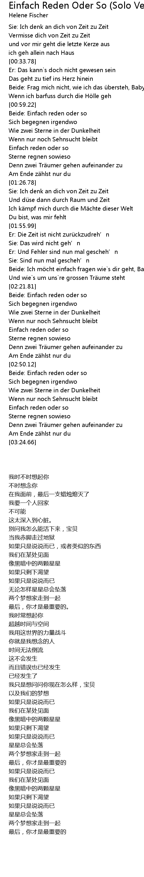| [02:40.54] | Denn zwei Träumer gehen aufeinander zu |