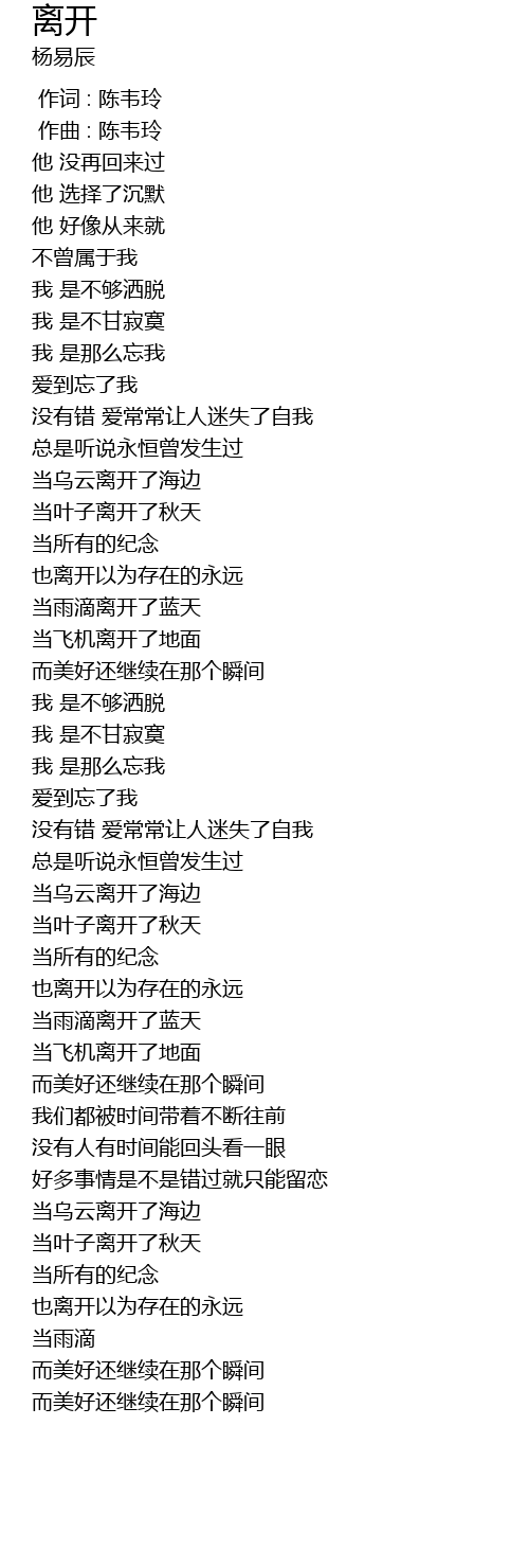| [02:26.935] | 当雨滴离开了蓝天 |