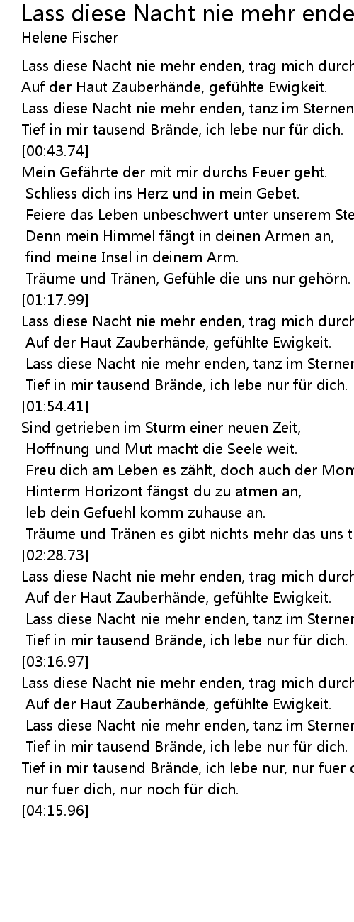 | [03:36.73] | Lass diese Nacht nie mehr enden, tanz im Sternenlicht. |