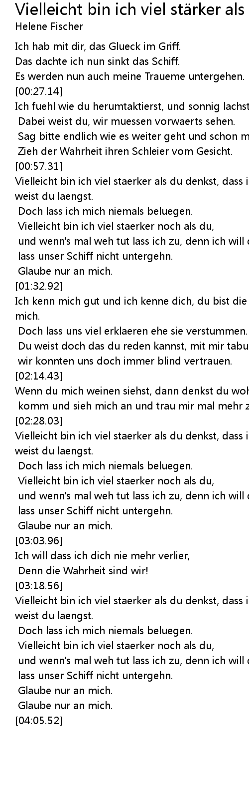 Vielleicht bin ich viel staerker als du denkst, dass ich dich liebe weist du laengst. |