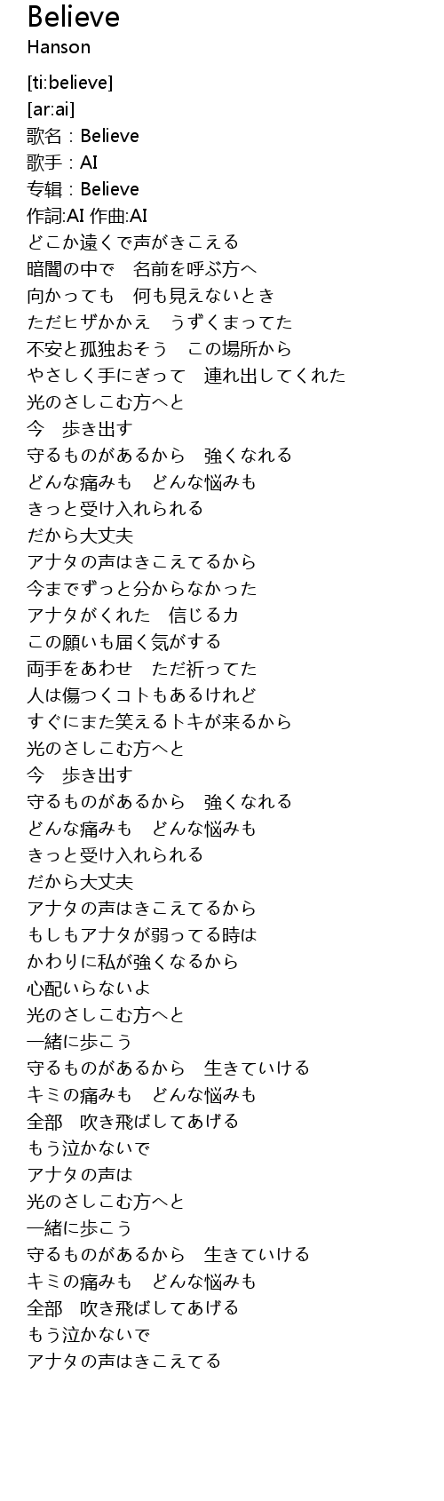 | [00:02.465] | 歌名:Believe |