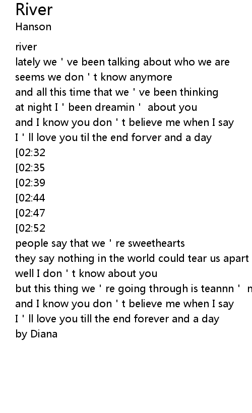 | [01:43] | I ll love you till the end forever and a day |