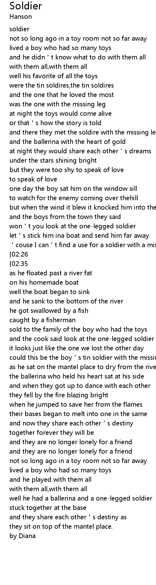 | [00:58] | were the tin soldires, the tin soldires |