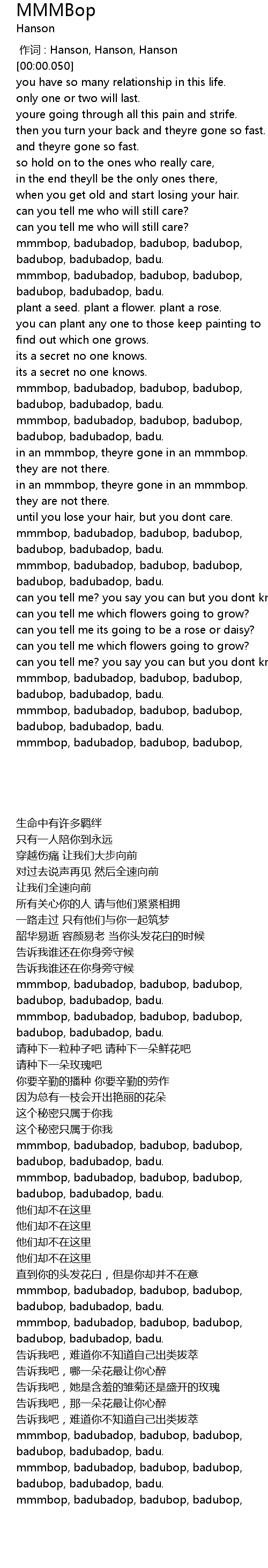 | [03:03.000] | mmmbop, badubadop, badubop, badubop, |