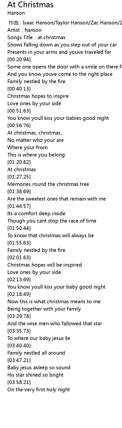 | [00:00.00] | 作曲 : Isaac Hanson/Taylor Hanson/Zac Hanson/Zachary Hanson |