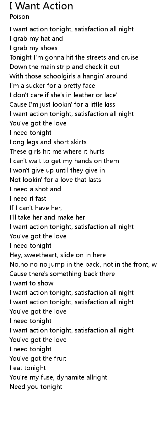 I want action tonight, satisfaction all night