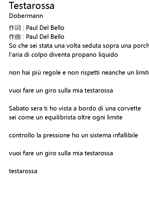 | 作词 : Paul Del Bello | |