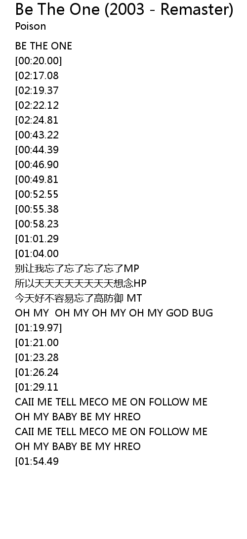 | [00:00.00] | BE THE ONE |