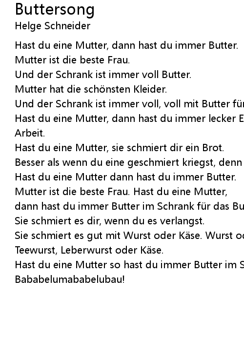 | Hast du eine Mutter so hast du immer Butter im Schrank, im Schrank, im Schrank. | |