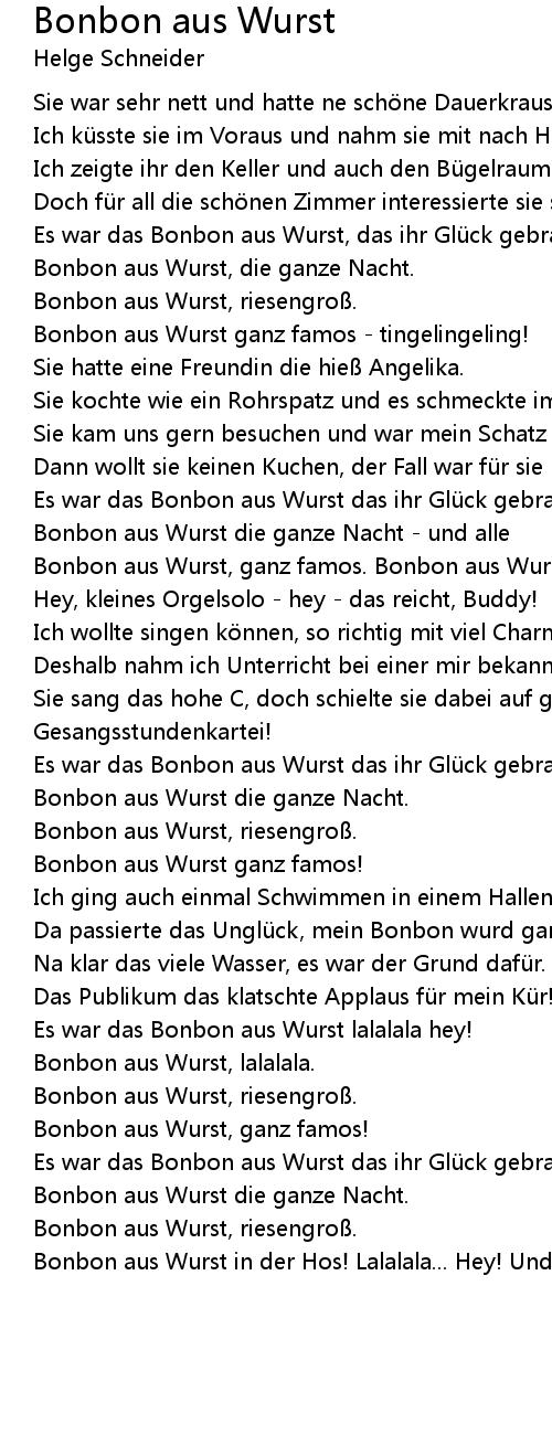 | Bonbon aus Wurst in der Hos! Lalalala... Hey! Und Schlu! |