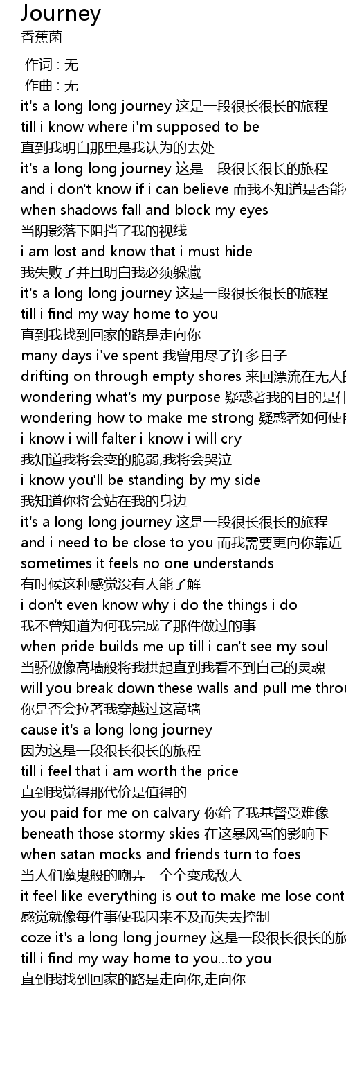 | [03:00.427] | coze it's a long long journey 这是一段很长很长的旅程 |