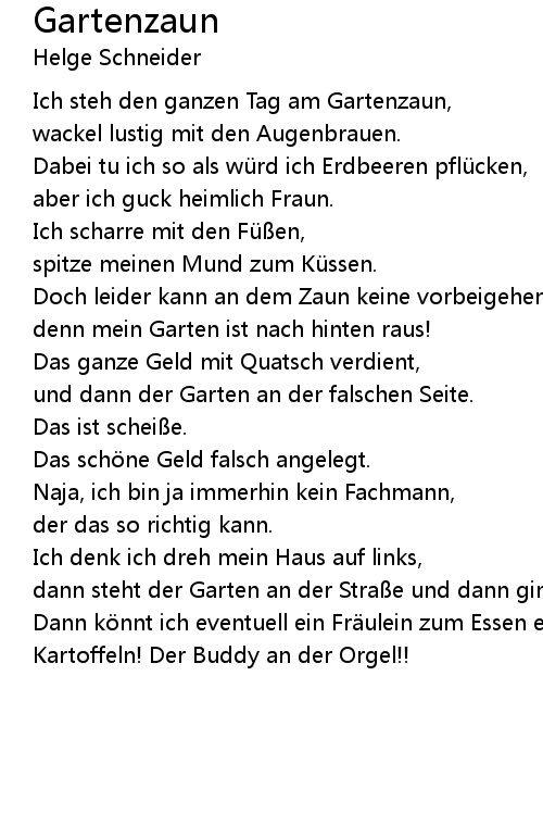 | Ich steh den ganzen Tag am Gartenzaun, | |