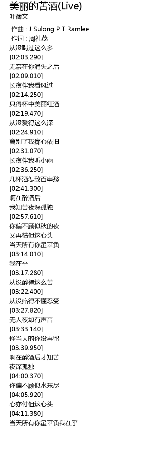 | [03:47.350] | 啊在醉酒后才知苦 |