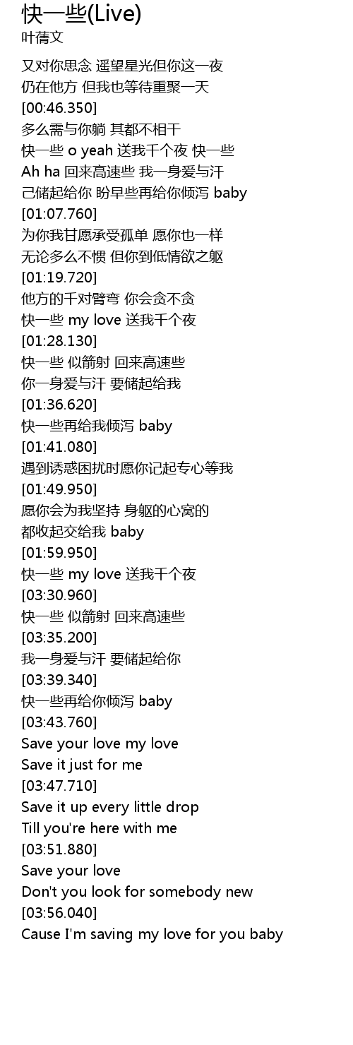 | [03:39.920] | 快一些再给你倾泻 baby |