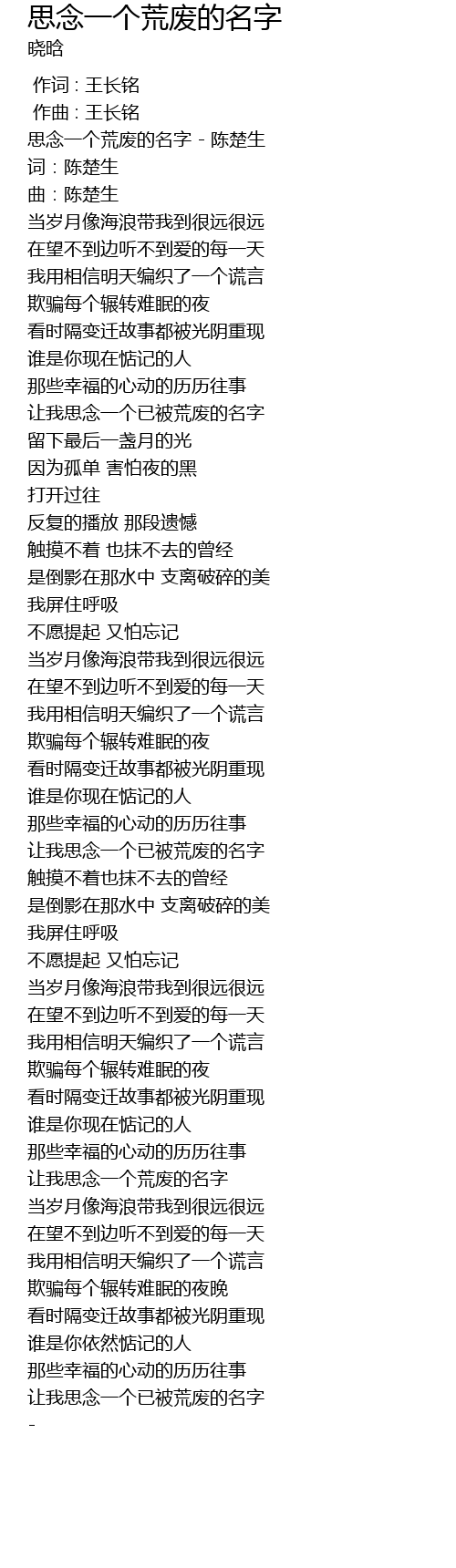 | Song | 思念一个荒废的名字 |