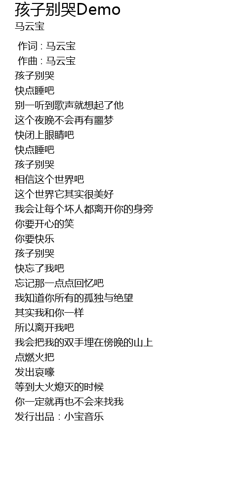 | [00:02.000] | 孩子别哭 |