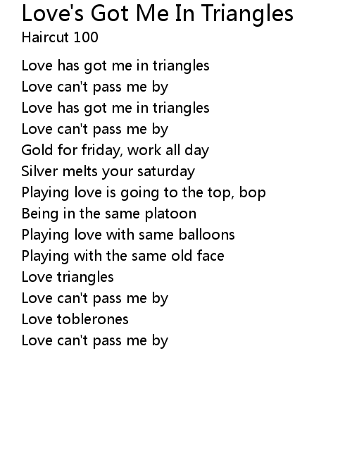 | Love has got me in triangles | |