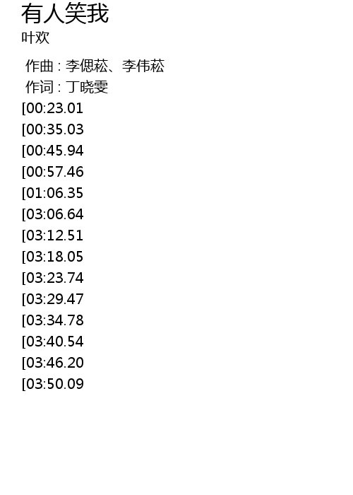| [02:44.59][00:45.94] | 有人笑我 有人笑我爱得太懵懂 |