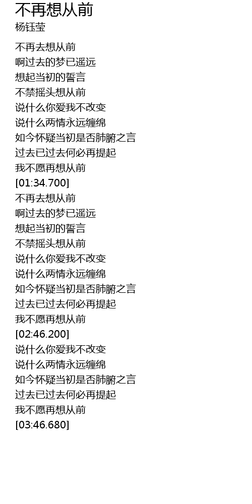 | [02:35.690] | wǒ bù yuàn zài xiǎng cóng qián |