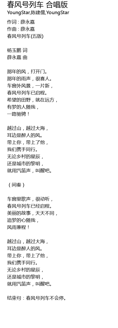 | jié shù jù: chūn fēng hào liè chē bú huì tíng. |