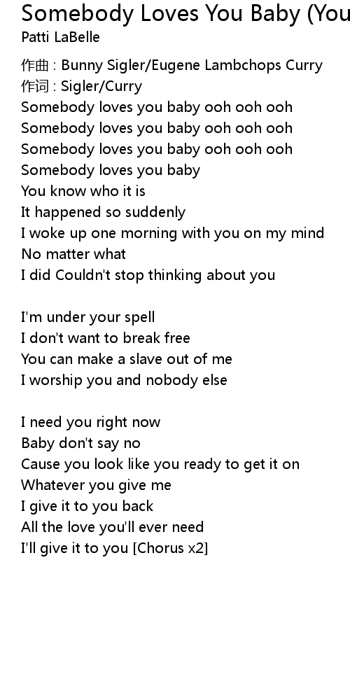| Song | Somebody Loves You Baby (You Know Who It Is) |