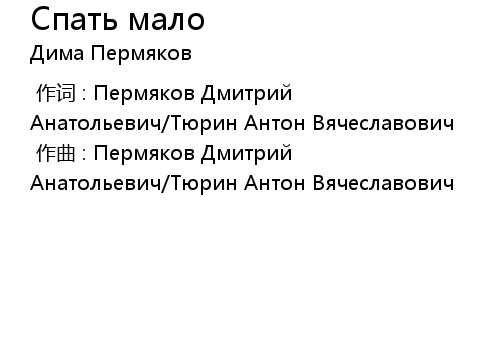 | [00:00.000] | 作词 : Пермяков Дмитрий Анатольевич/Тюрин Антон Вячеславович |