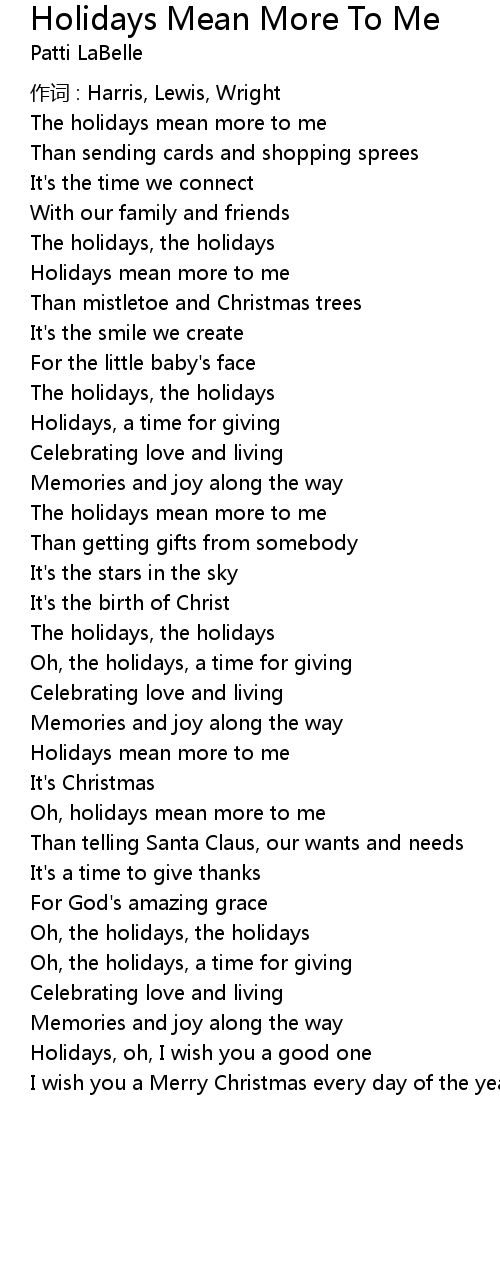| Song | Holidays Mean More To Me |