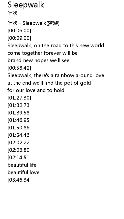 | [00:03.00] | 叶欢 - Sleepwalk(梦游) |