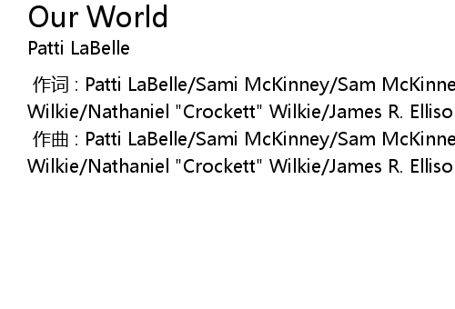 | [00:00.000] | zuò cí : Patti LaBelle Sami McKinney Sam McKinney Nathaniel Wilkie Nathaniel " Crockett" Wilkie James R. Ellison James R. " Bud" Ellison |