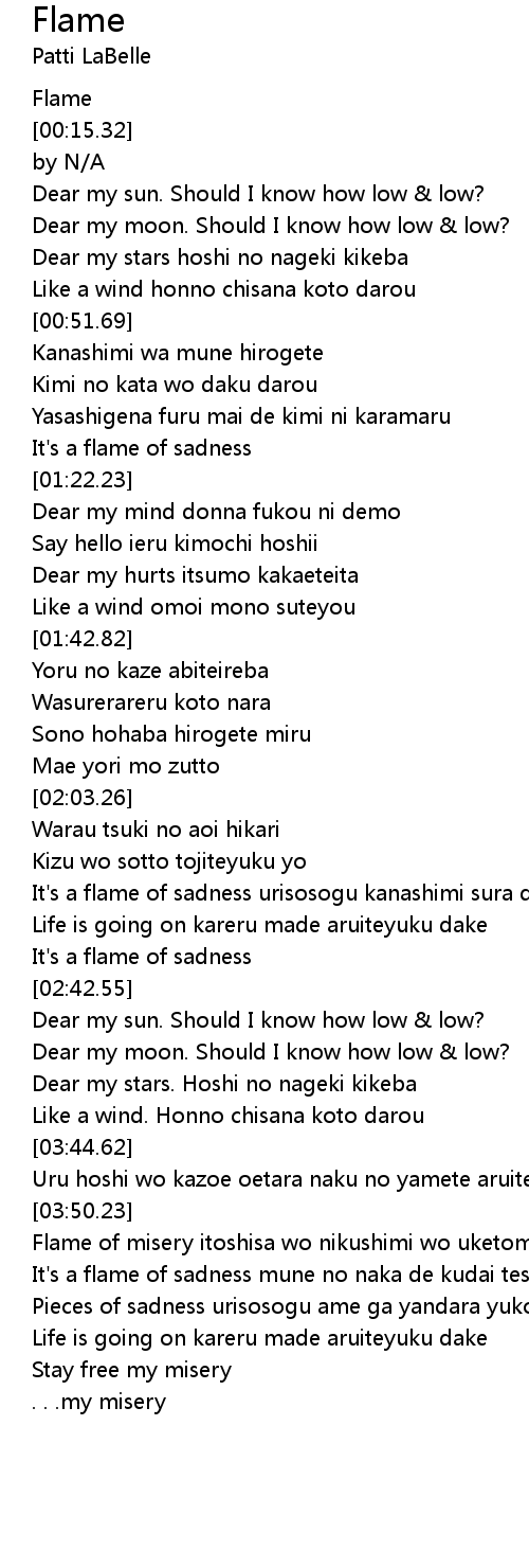 It's a flame of sadness mune no naka de kudai teshimae subete |