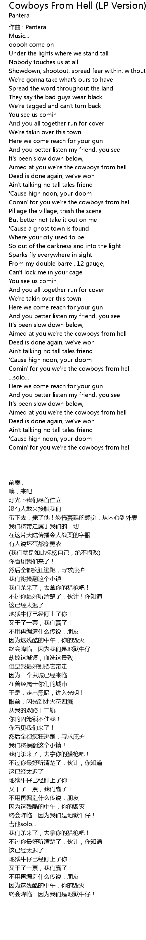 | [01:42.00] | Comin' for you we're the cowboys from hell |