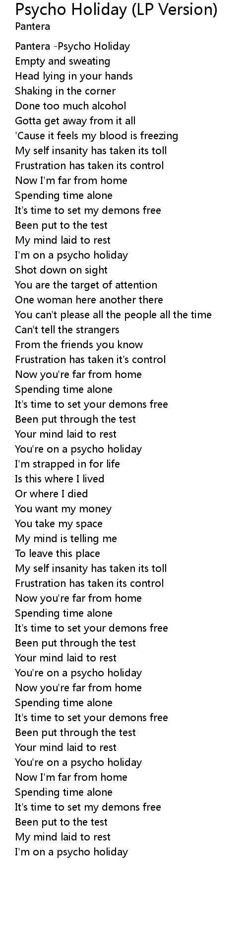 I'm on a psycho holiday |