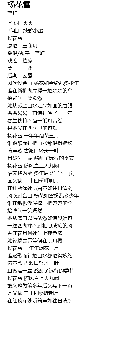 | [02:39.338] | yáng huā xuě yī nián nián yān huā sān yuè |