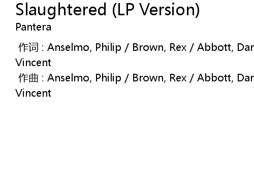 | [00:00.000] | 作词 : Anselmo, Philip / Brown, Rex / Abbott, Darrell / Abbott, Vincent |