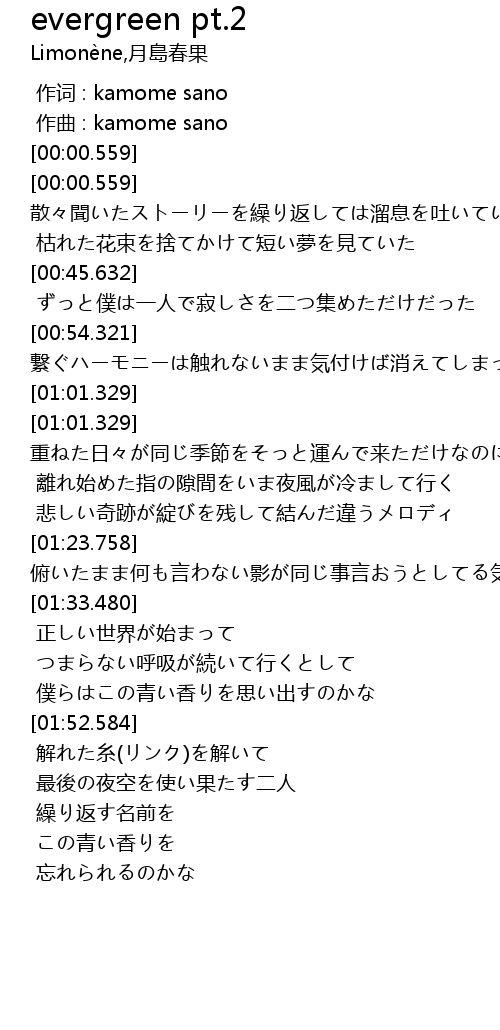 | [00:54.321] | 繋ぐハーモニーは触れないまま気付けば消えてしまって |