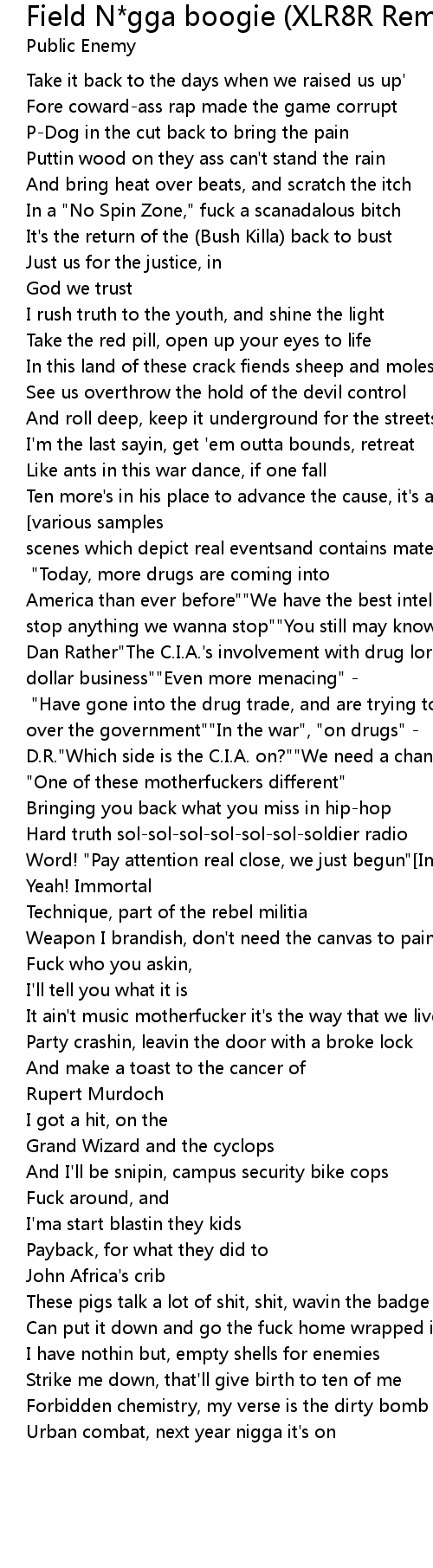Ten more's in his place to advance the cause, it's all[reggae chat interlude][various samples]"This program includes dramatic re-enactments of scenes which depict real eventsand contains material which is intended for" (HIP-HOP)"Welcome to the show!"[Dan Rather] "Today, more drugs are coming into America than ever before""We have the best intelligence in the world, we can stop anything we wanna stop""You still may know little about" - |