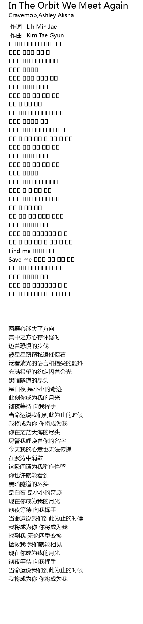 | [02:19.00] | Save me 만나게 되는 너와 나의 |