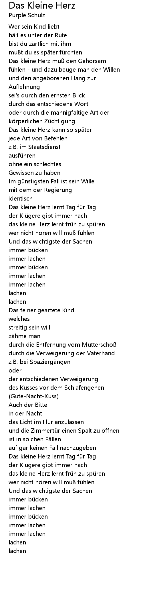 | Das kleine Herz muß den Gehorsam | |
