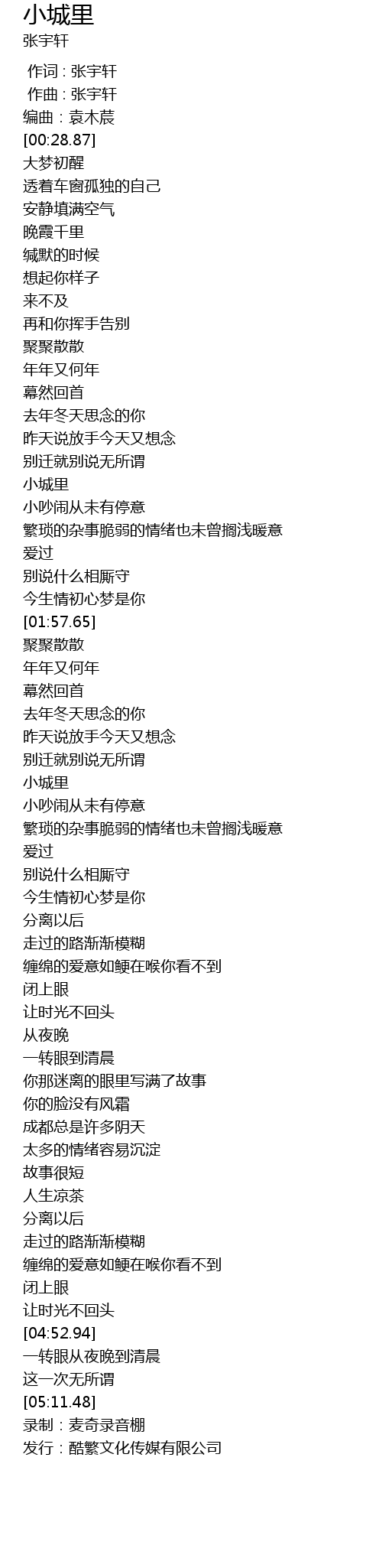 | [05:14.41] | 发行:酷繁文化传媒有限公司 |
