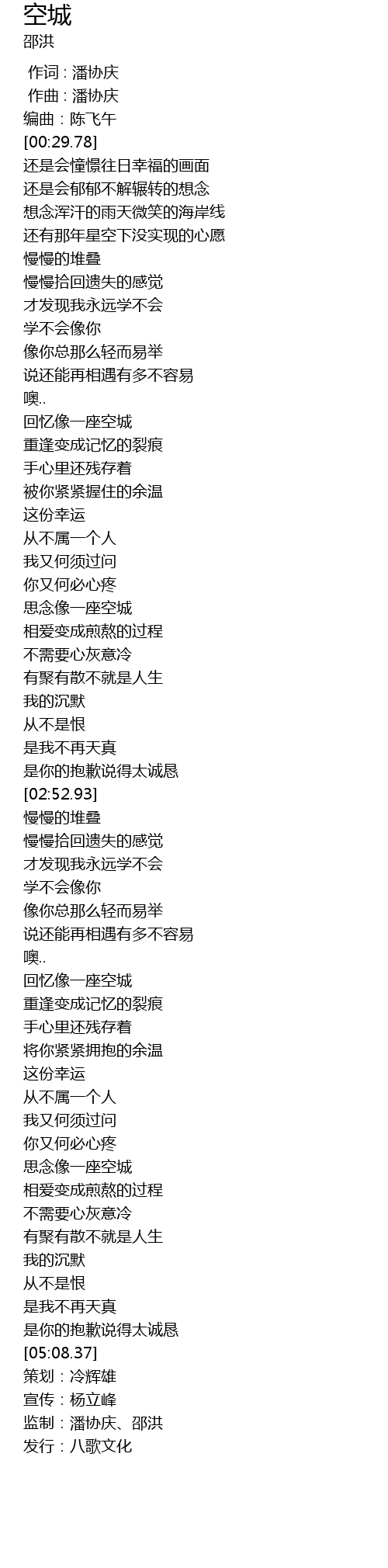 | [03:57.92] | huí yì xiàng yī zuò kōng chéng |