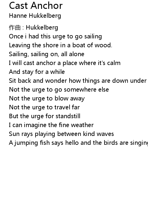 | I will cast anchor a place where it's calm | |