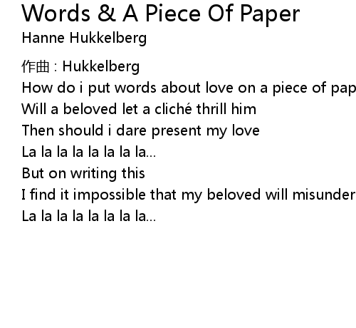 | Song | Words & A Piece Of Paper |