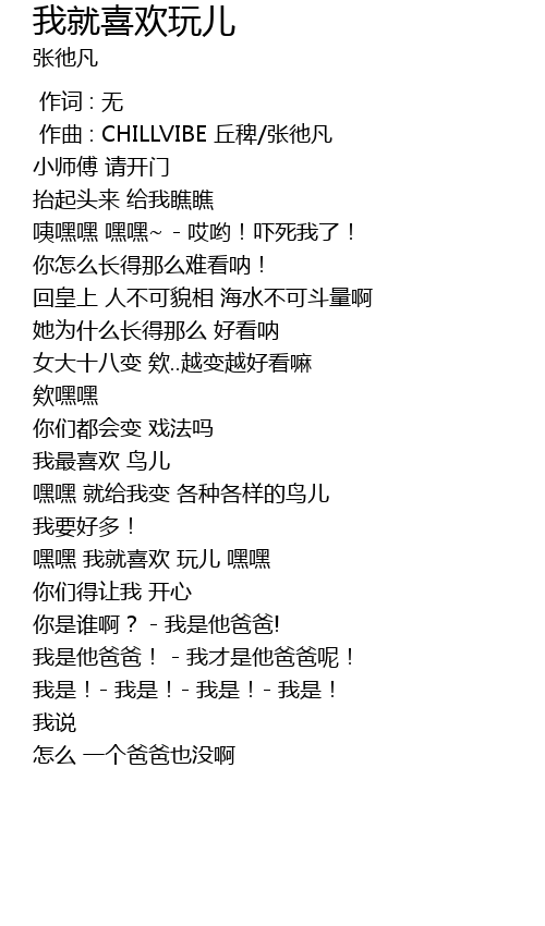| [01:20.55] | 嘿嘿 我就喜欢 玩儿 嘿嘿 |