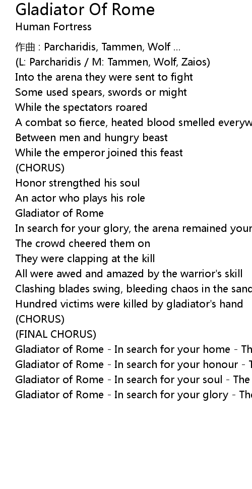 | Song | Gladiator Of Rome |