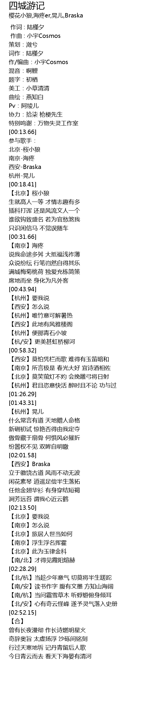 | [02:40.750] | 【南/杭】当问霜雪草木 听蜉蝣俯身倾耳 |