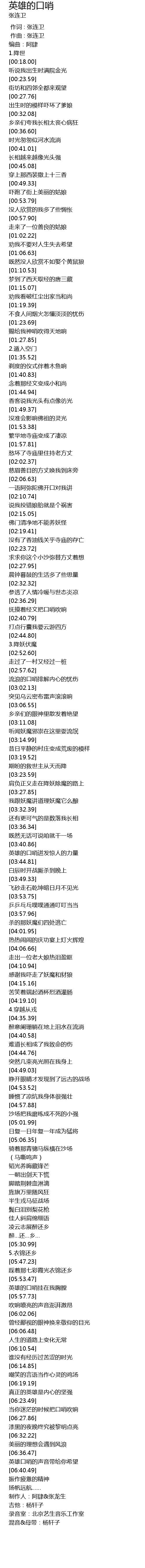 | [03:41.33] | yīng xióng de kǒu shào bèng fā jīng rén de lì liàng |