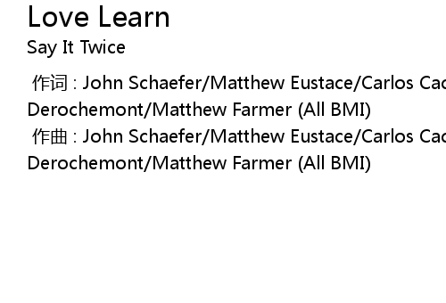 | [00:00.000] | 作词 : John Schaefer/Matthew Eustace/Carlos Cacciamani/Phillip Derochemont/Matthew Farmer (All BMI) |
