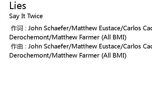 | [00:00.000] | 作词 : John Schaefer/Matthew Eustace/Carlos Cacciamani/Phillip Derochemont/Matthew Farmer (All BMI) |