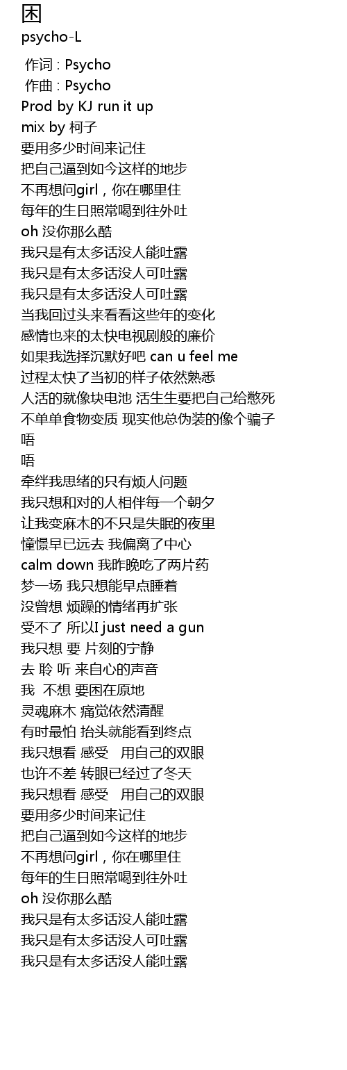 | [00:00.000] | 作词 : Psycho |