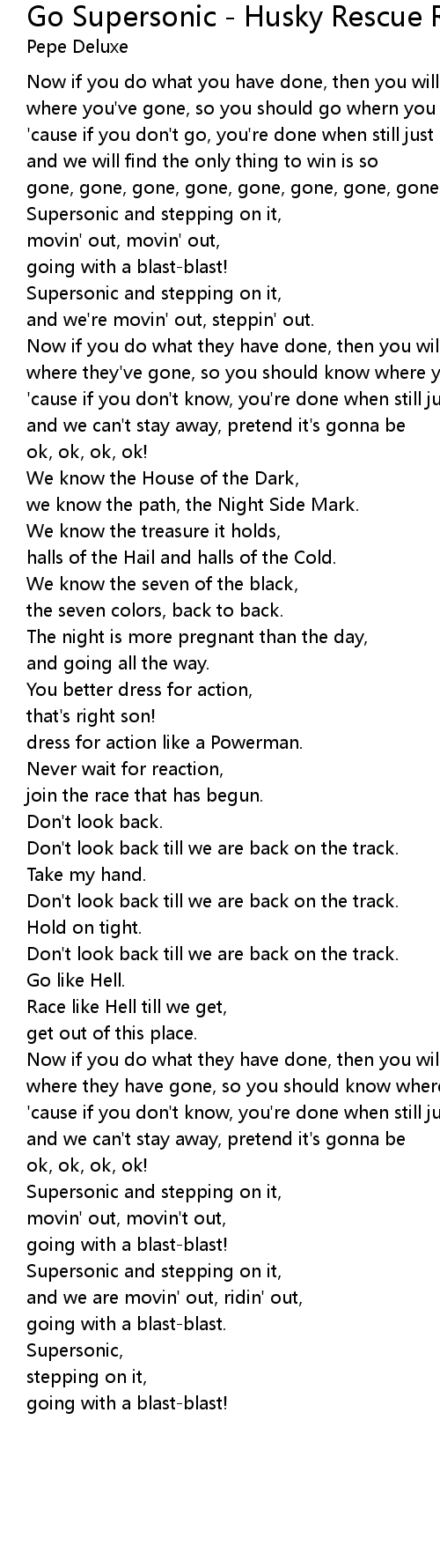 Go Supersonic - Husky Rescue Remix Lyrics